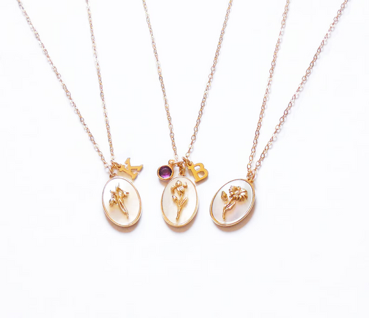 Birth Flower Necklace, Gold Filled Birth Month Flower Necklace