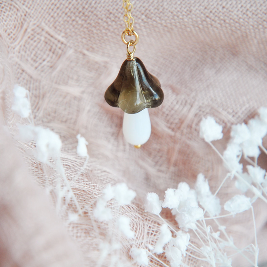 Brown Mushroom Necklace, Mushroom Jewelry, Toadstool Necklace