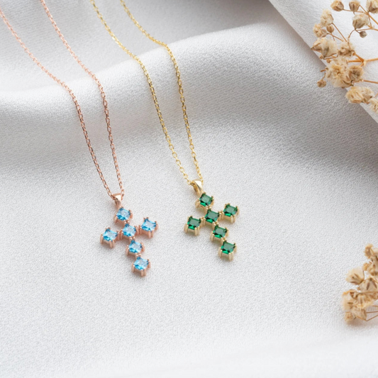 Birthstone Cross Neckalce - Gold Personalized Cross Jewelry