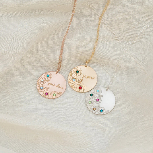 Birthstone Mother's Flower Necklace - Mother's Grandmother's Gift