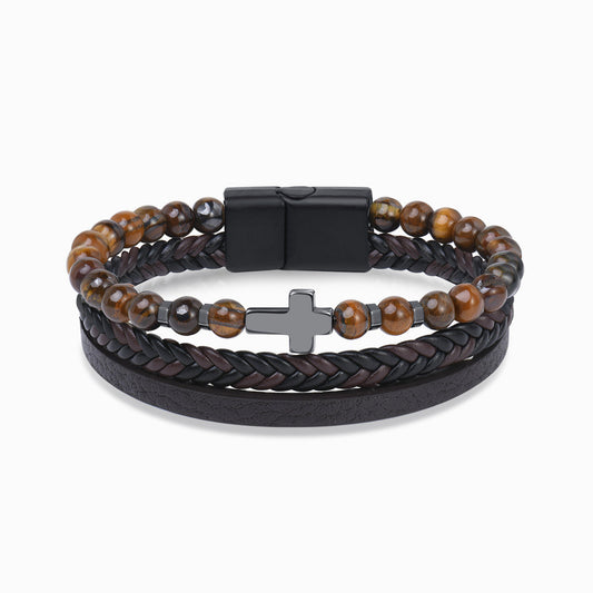To My Son, Pray Through It Obsidian Leather Bracelet