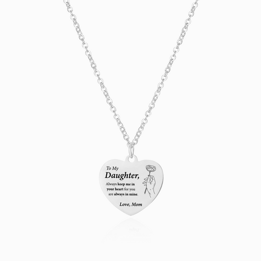 To My Beautiful Daughter, Always Keep Me in Your Heart Engraved Heart Necklace