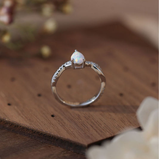 Teardrop-shaped White Opal Ring in S925 Sterling Silver Design
