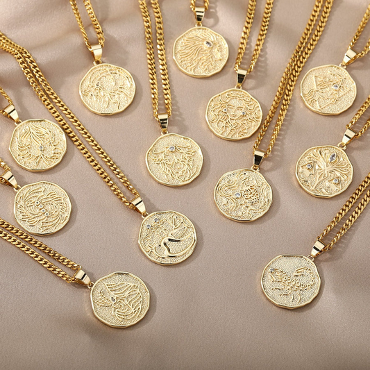 Astrological Sign Coin Pendant Necklace - Valentine's Day Or Birthday Gift For Her