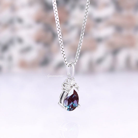 Teardrop Alexandrite Pendant Necklace- 925 Sterling Silver