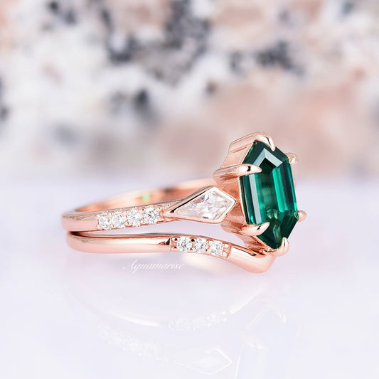 Hexagon Emerald Ring Set- 14K Rose Gold Vermeil