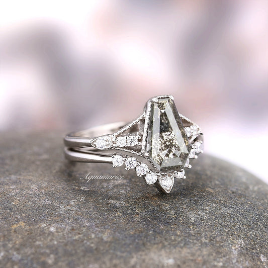 Galaxy Raw Salt & Pepper Diamond (Herkimer Diamond) Engagement Ring- Black Rhodium Filled