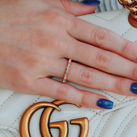 Dainty Rose Australian Opal Wedding Band- 14K Rose Gold Vermeil