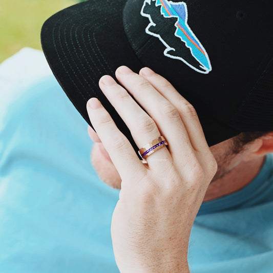 Crushed Amethyst Wedding Band- 8MM Rose Gold Tungsten