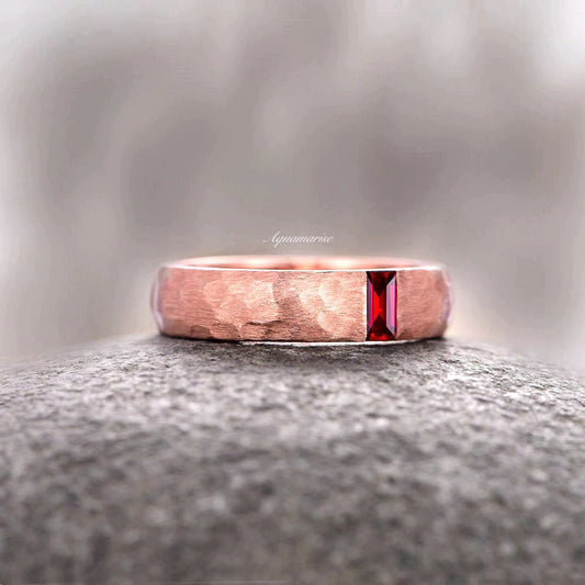 Garnet Wedding Band- 5.5MM 14K Rose Gold Vermeil