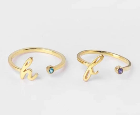 Ring mit kursivem Buchstaben und Geburtsstein