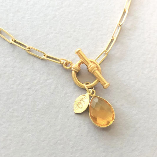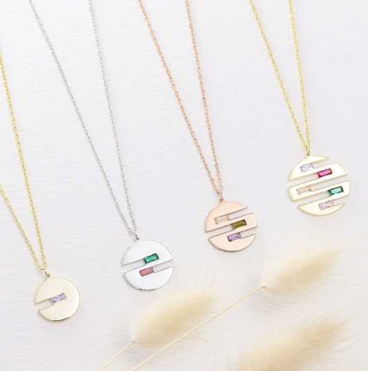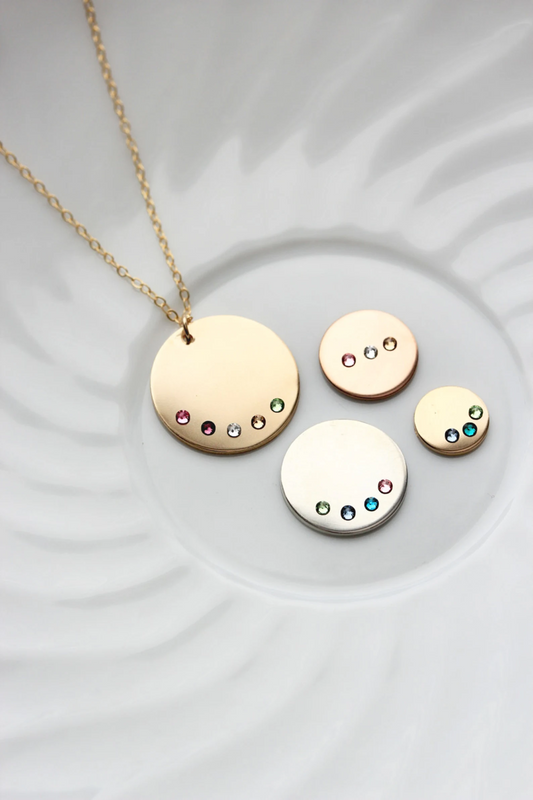 Goldene Scheibenkette • Geburtssteinkette • Personalisierte Scheibe • Edelsteinkette