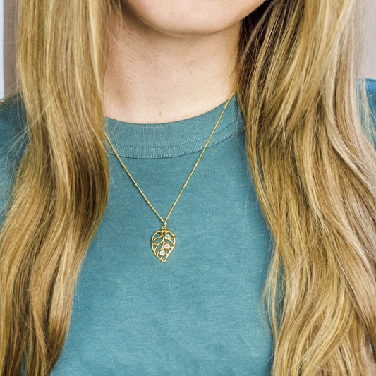Personalisierte Halskette mit Geburtssteinanhänger (Blatt)