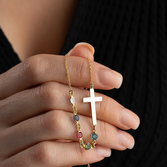 Personalisierte Silberkreuz-Halskette mit Geburtsstein, Kreuz-Familien-Geburtsstein-Halskette