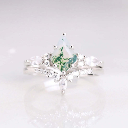 Green Moss Agate Wedding Band- 6MM Tungsten