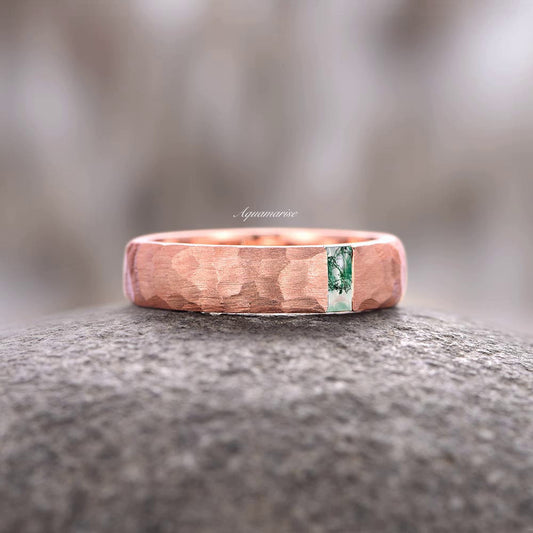 Moss Agate Wedding Band- 4MM Rose Gold Tungsten