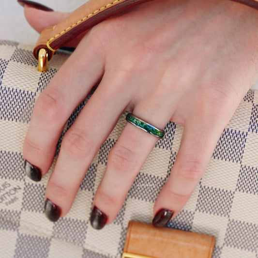 Moss Agate & Fire Opal Wedding Band- 8MM Tungsten