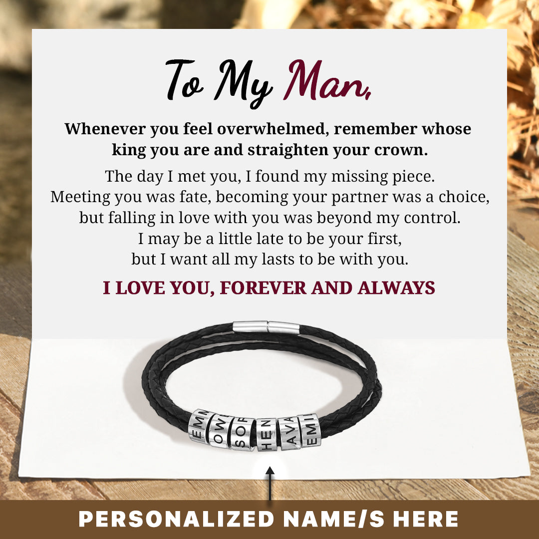 An meinen Mann, liebe dich für immer, personalisiertes Perlen-Lederarmband