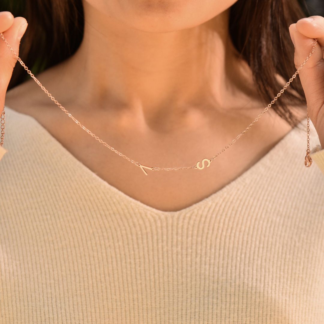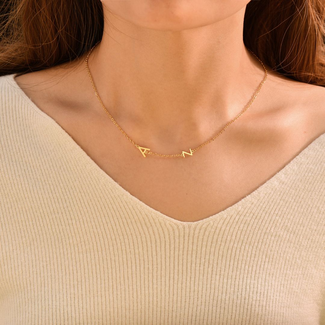 Personalisierte seitliche Initialen-Halskette
