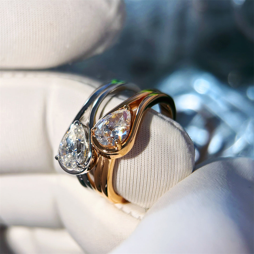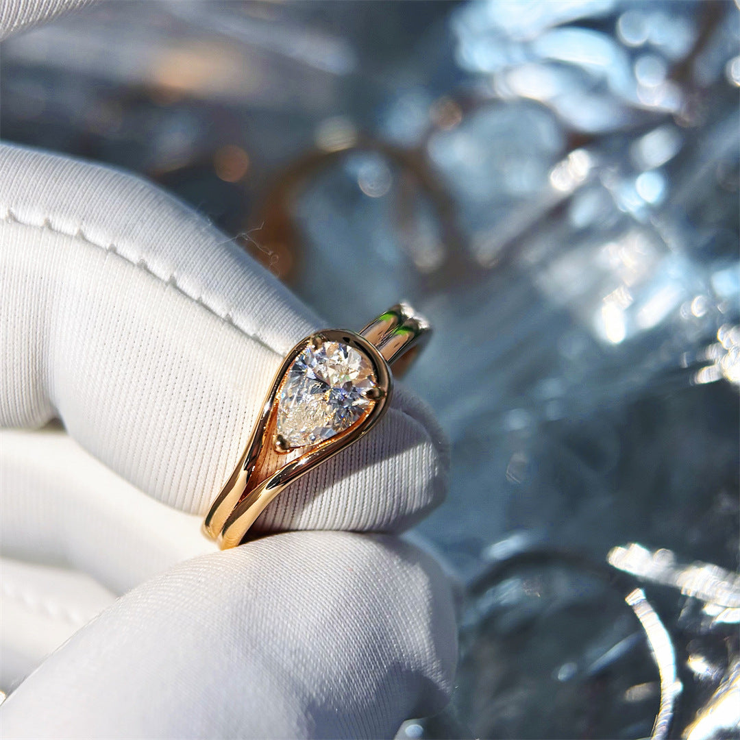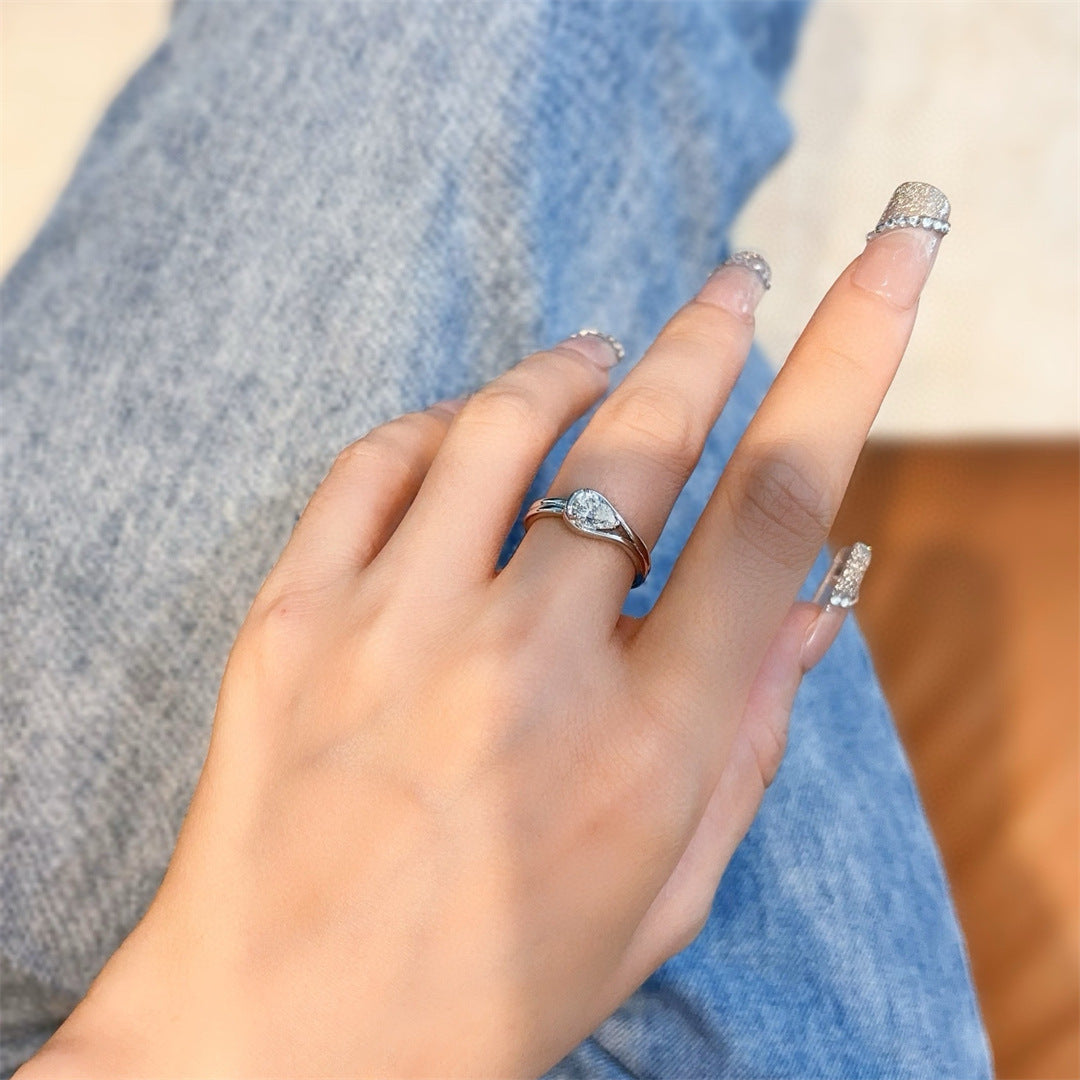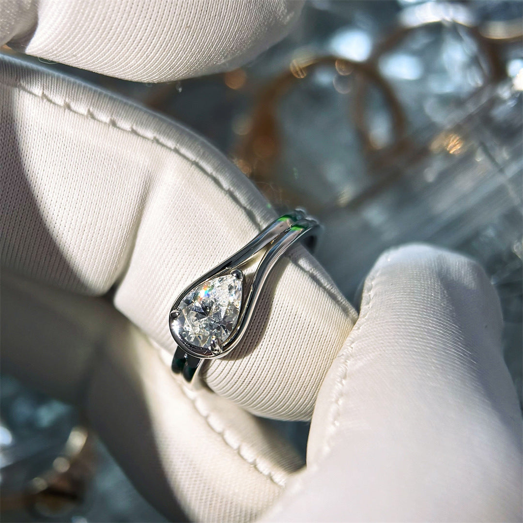A teardrop - shaped Lab diamond takes center stage, like a glimmering Deep Sea Eye. The sleek silver band curves elegantly to cradle the stone, blending modern minimalism with timeless allure.