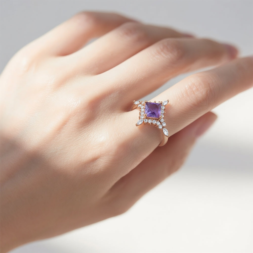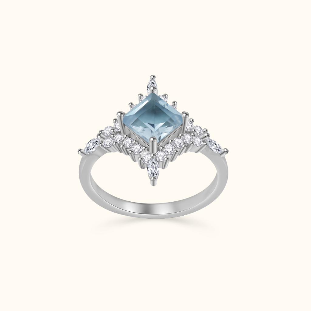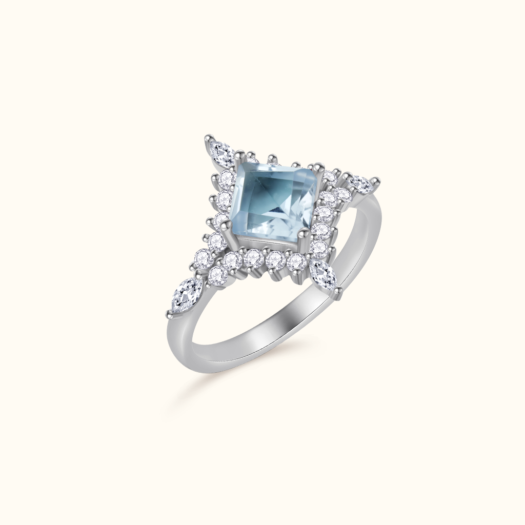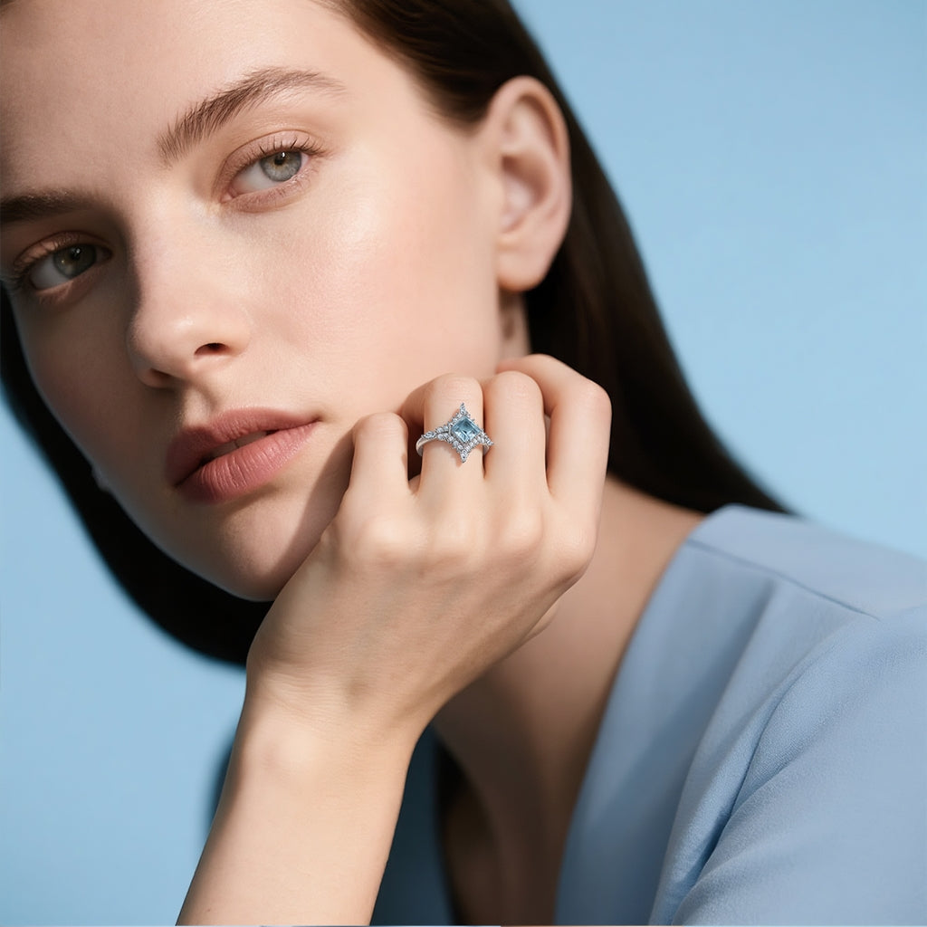 Crafted with S925 silver, this ring features a diamond - shaped center gem surrounded by sparkling stones. The center showcases moss, Aquamarine, or amethyst, blending nature - inspired charm with elegant metalwork.