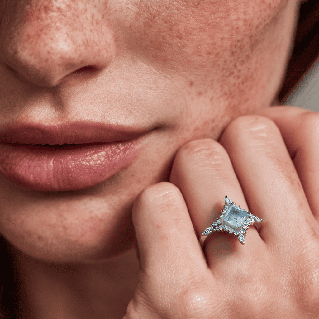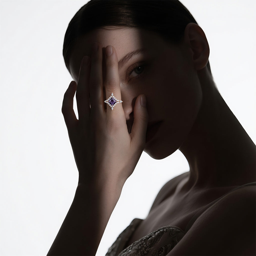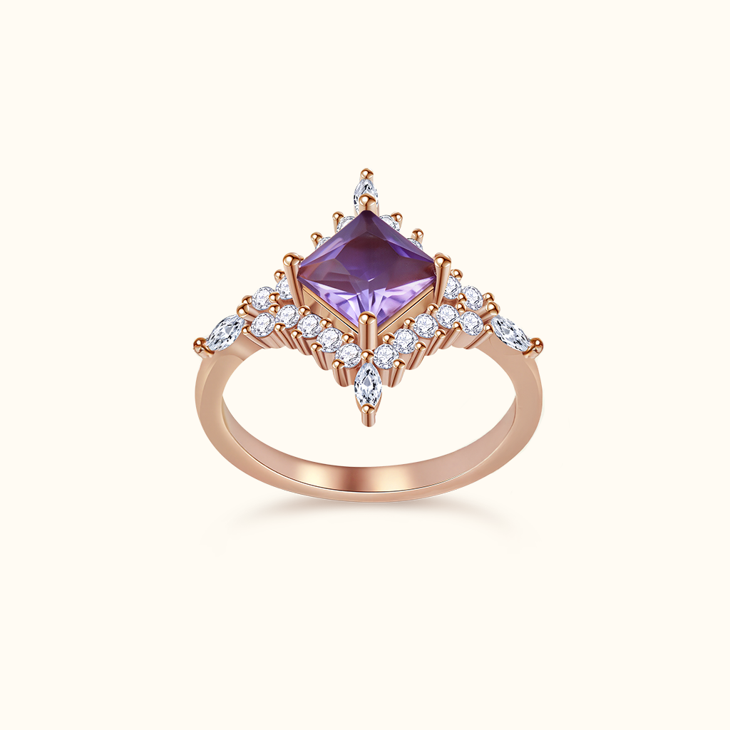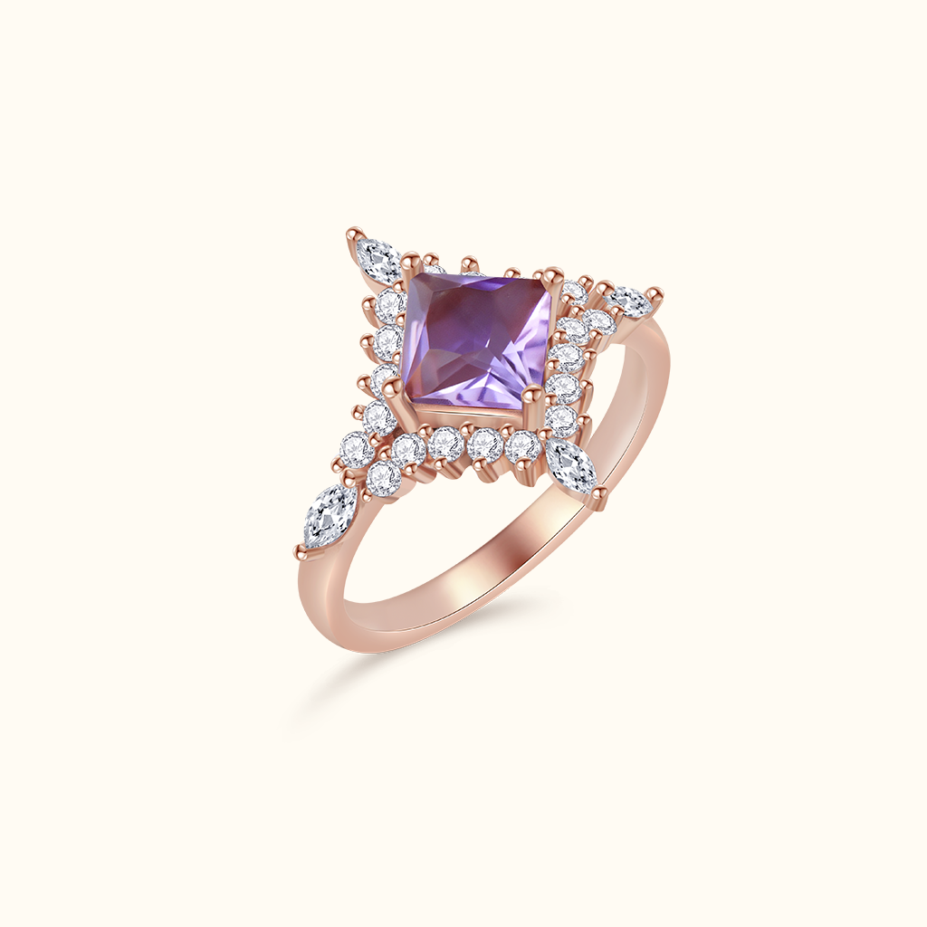 Crafted with S925 silver, this ring features a diamond - shaped center gem surrounded by sparkling stones. The center showcases moss, Aquamarine, or amethyst, blending nature - inspired charm with elegant metalwork.