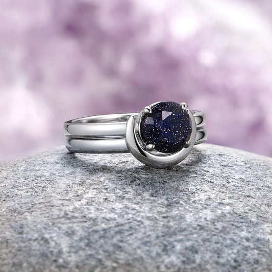 Orion Nebula & Cornflower Sapphire Leaf Couples Ring