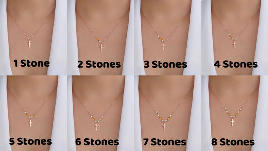 Sterling Silver Cross with Tiny birthstone necklace - Family tree necklace