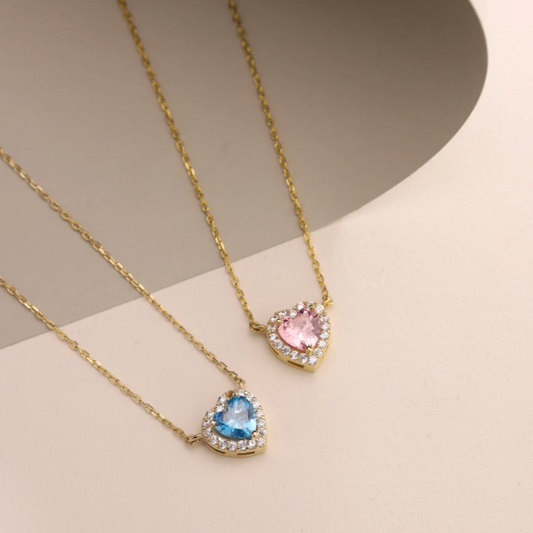 Birthstone Heart Necklace, Diamond Heart Necklace