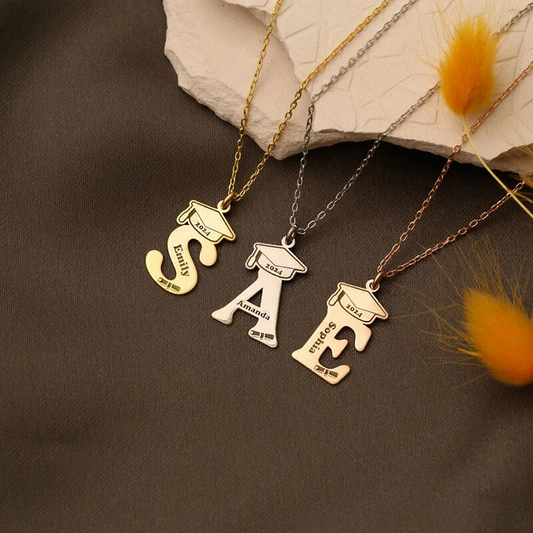 Personalized Letter Necklace With Bachelor's Cap Graduation Gift