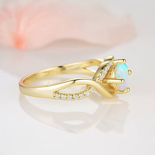 Entwined Natural Australian Opal Ring- 14K Solid Yellow Gold