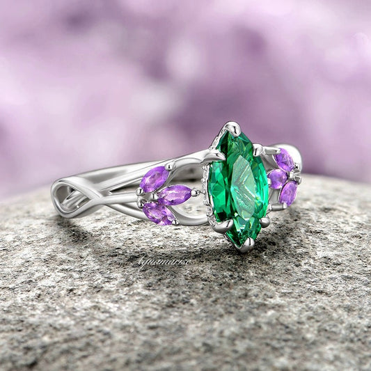 Emerald & Amethyst Mystical Fairy Queen Ring- Sterling Silver