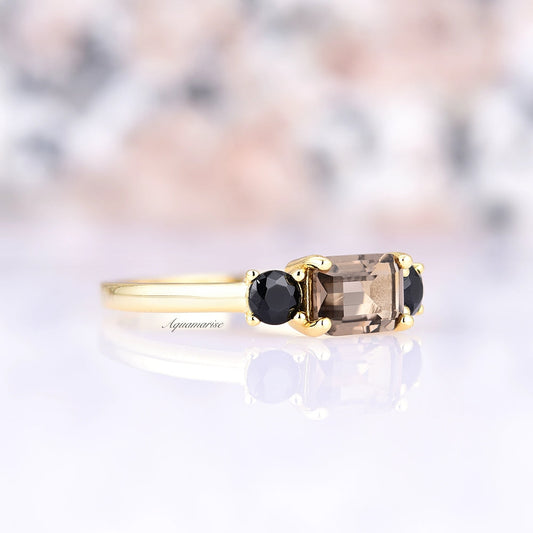 Coffin Cut Blue Sapphire & Black Onyx Ring- 14K Yellow Gold Vermeil