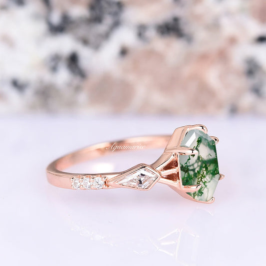 Celtic Hexagon Green Moss Agate Ring- 14K Rose Gold Vermeil
