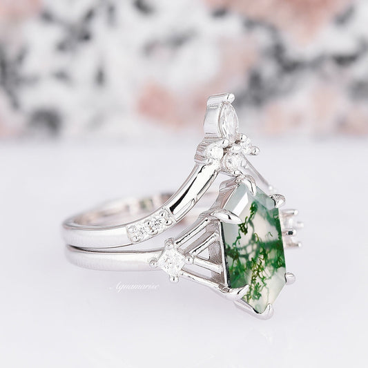 Celtic Hexagon Green Moss Agate Ring Set- 925 Sterling Silver