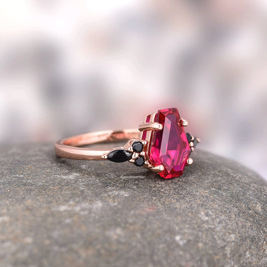 Coffin Cut Ruby & Black Onyx Ring- 14K Rose Gold Vermeil