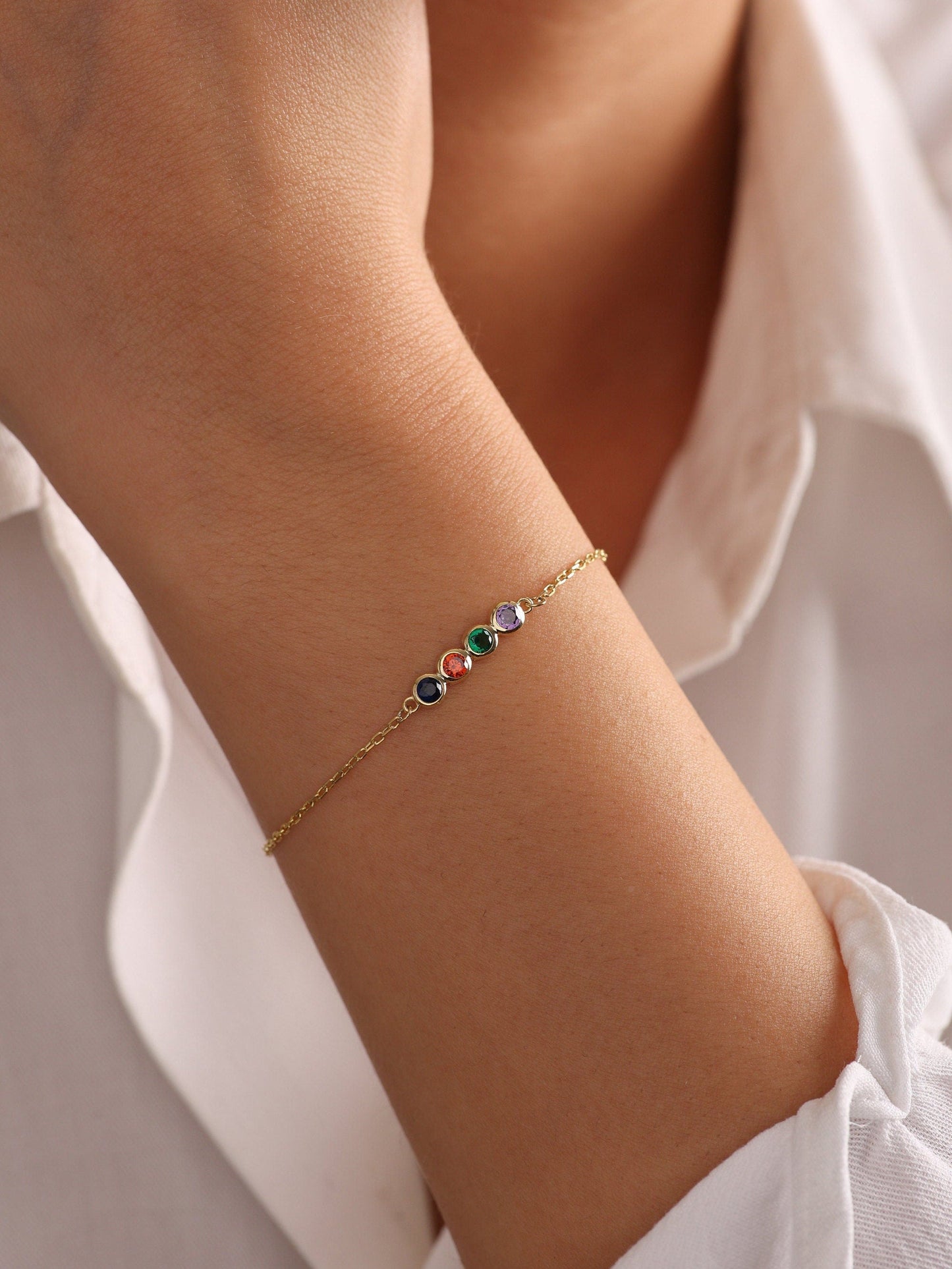 • Dainty and sentimental birth stone bracelet, represents friendship, a new baby, being a family and more...