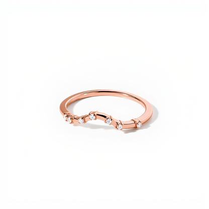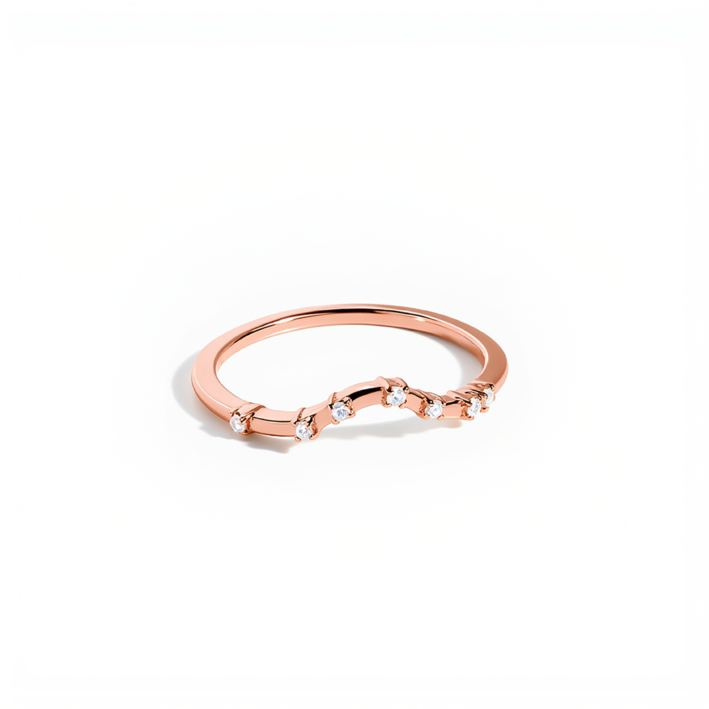The ring features a sleek and minimalist band, with a subtle wave - like design on one side. Adorning this section are small, sparkling diamonds, adding a touch of glamour and elegance. The diamonds are meticulously set to maximize their brilliance, creating a beautiful contrast against the warm hue of the 18K rose gold plating. The overall design is both modern and timeless, making it a versatile piece for any jewelry collection.