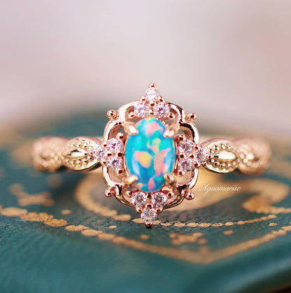 Vintage Blue Fire Opal Engagement Ring in 14K Solid Rose Gold